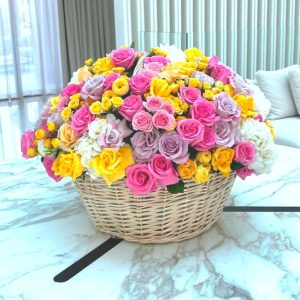 A marvelous flower surprise arrangement in a basket is a unique idea for a gift, a style of flower arrangement designed by our top florist, an exquisite blend of stunning flowers in soothing shades of pink, this a piece of art floral arrangement exceeds the particular symbolization of flowers, it represents happiness and peace, mixture of blooms is the greatest way to put a smile, it’s a shadow of purity, adoration, kind, innocence, and complimentary. Acquire a mixed of flower is a signal of harmony and excitement. These flowers are appropriate for presenting on any occasion.